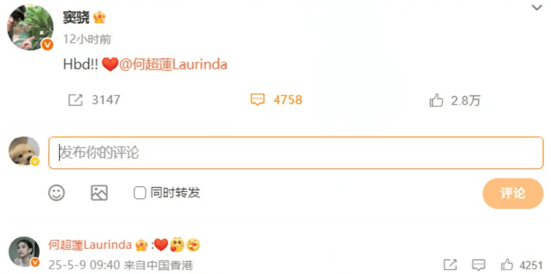今年唯一的互动是,何超莲生日男方送祝福,何超莲也回复了,两人关系似乎才迎来破冰。