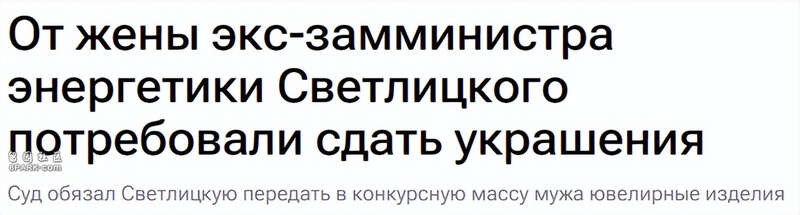 最开始提到的斯韦特利茨卡娅,她虽然不是政府高层本人,但由于其是被认定破产的前高官的妻子,其所持有的珠宝、名表、贵金属、硬币、宝石等,便直接被法院视为“可用于被清算”的资产。