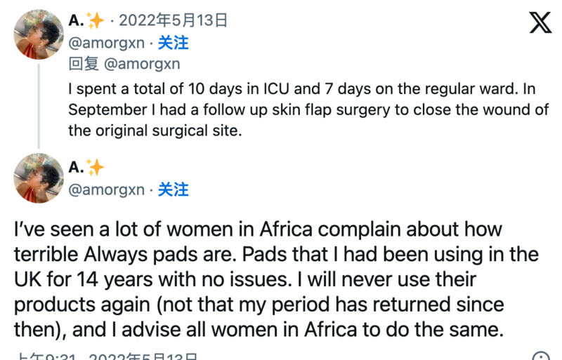直到她开始在社交媒体上搜索“burn+Always pads(灼伤+Always卫生巾)”,才发现——不是她一个人出问题。