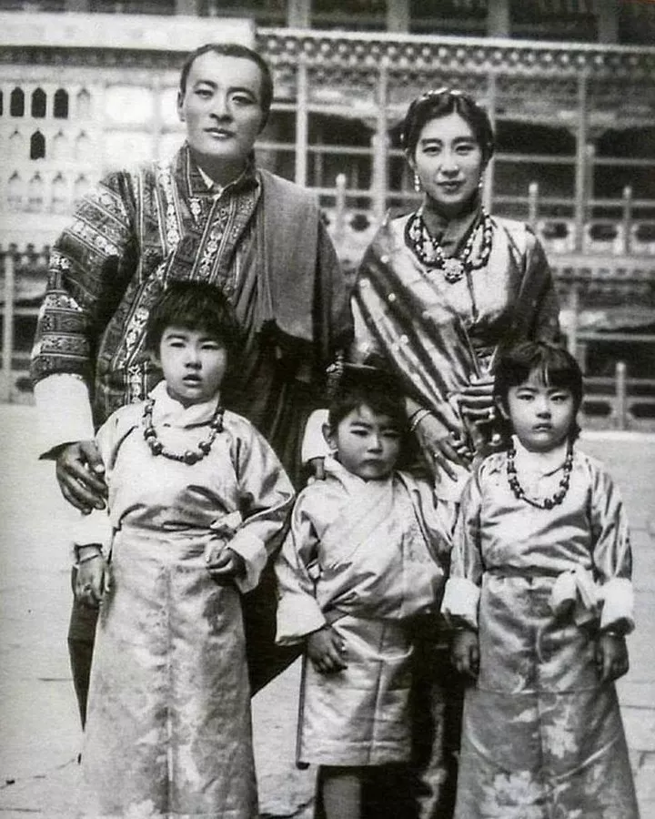 格桑·却登先后诞下四个女儿,直到第五胎才生下儿子辛格。可惜,这仍未能挽回国王的心。 【格桑、多杰国王与女儿们】(queenjetsunpema@IG)