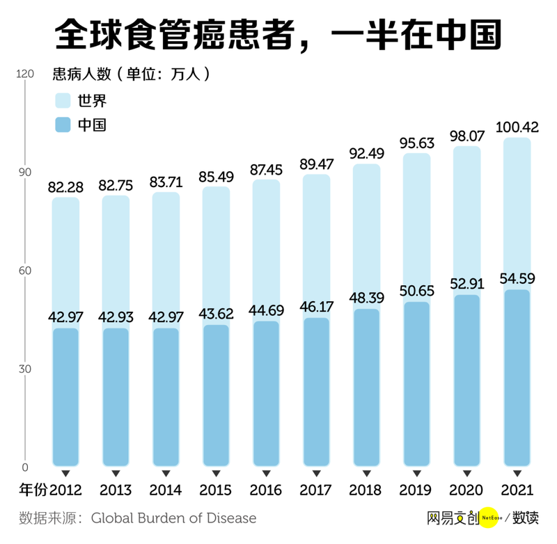 但爱吃热食甚至烫食的习惯,让中国人不知不觉间离一种顽疾更进一步。无论是患病人数还是死亡人数,中国都是全球食管癌第一大国,患病率也居全球前列 [1]。