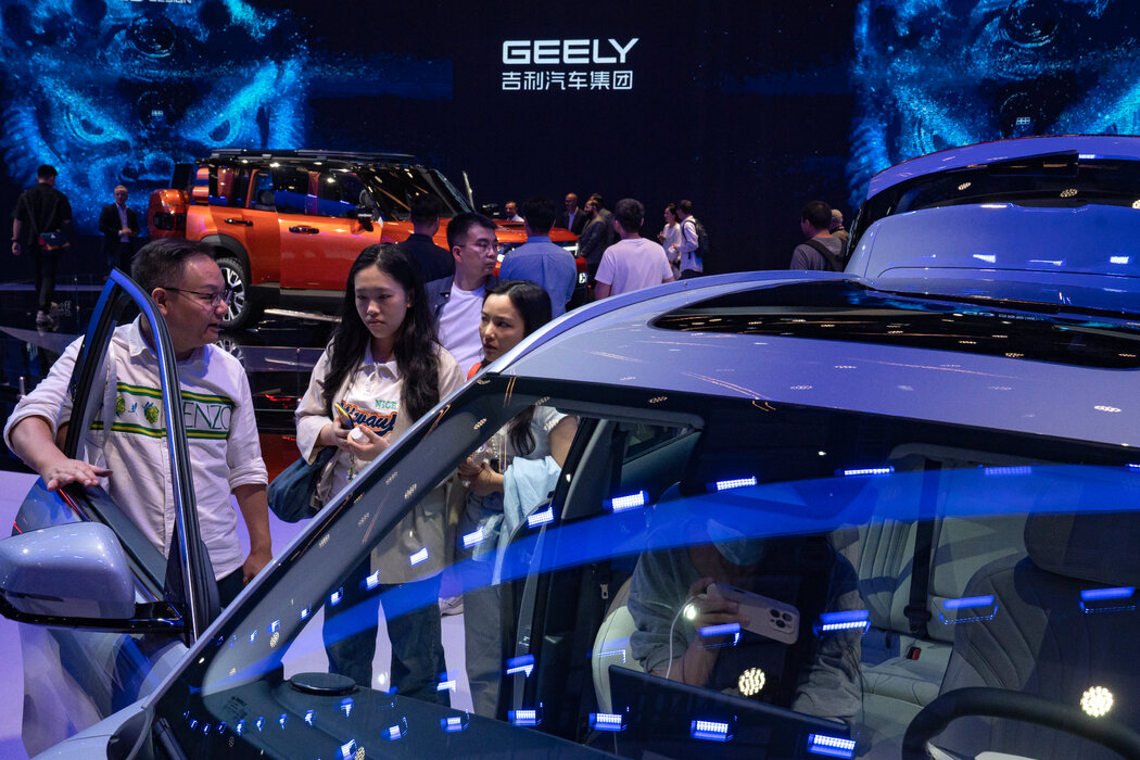 4月的上海车展。去年,中国启动了一项以旧换新计划,允许消费者用旧车和家电换购新产品并享受折扣。 ANDREA VERDELLI FOR THE NEW YORK TIMES