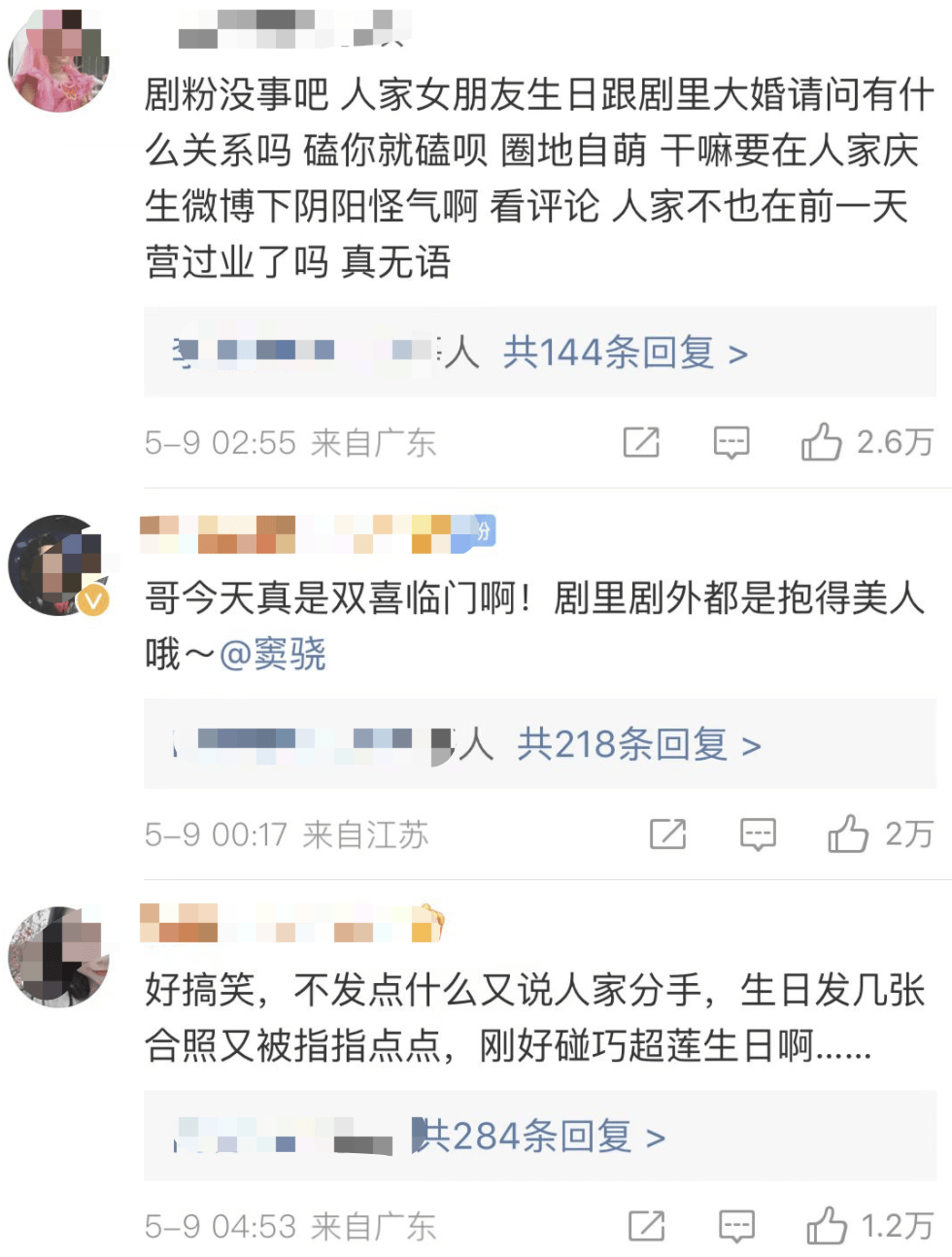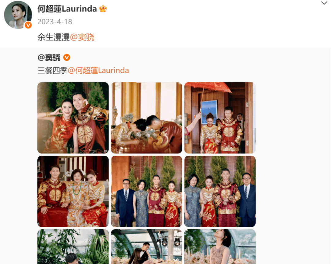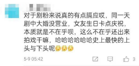 最巧的是,剧情演到男女主大婚的时候,第二天刚好赶上何超莲生日,于是陈都灵这边还在微博上宣传结婚剧情呢,窦骁那边已经在忙着给女友庆生。