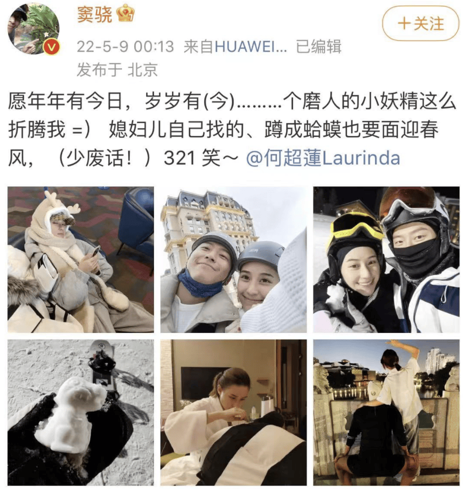 除了合照这块,生日互动、互送祝福一向也被网友视为明星cp的感情照妖镜。但去年年底窦骁过生日时,何超莲既没发祝福也没发合照,只上线给自己的新作宣传了一波。