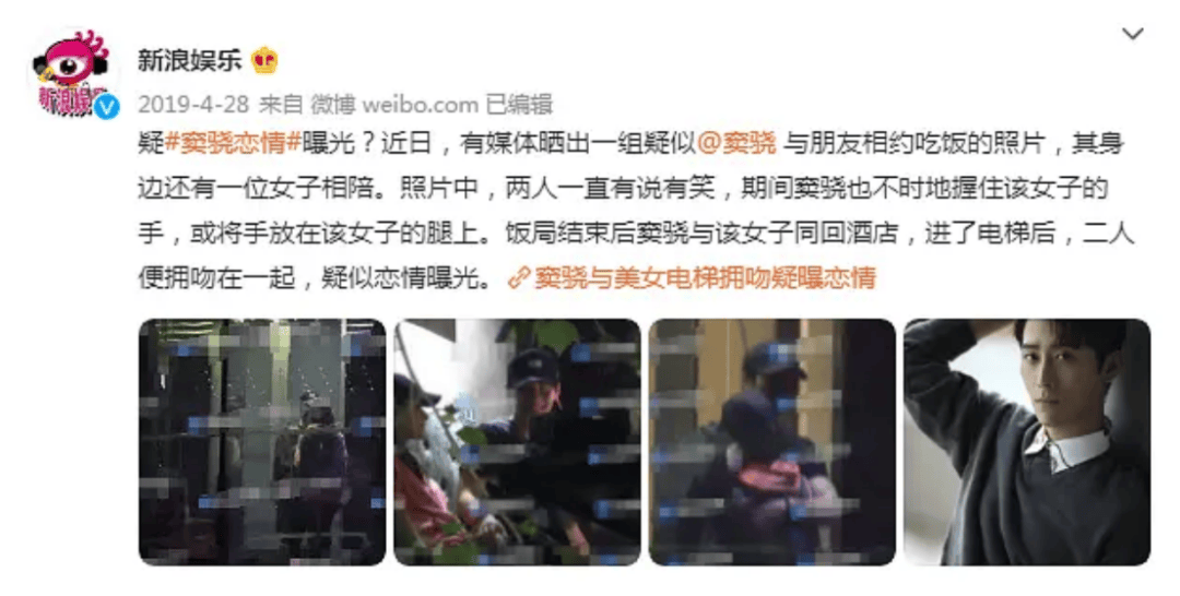 狗仔拍到窦骁带何超莲一起跟朋友约饭,吃完饭两人同回酒店,还在电梯里拥抱、亲吻。#窦骁恋情#上热搜之后,两位当事人就火速发微博认爱了。