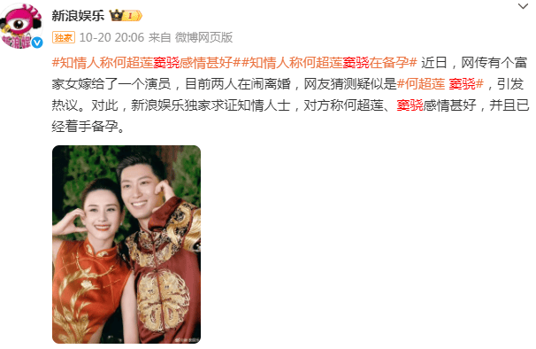 来源:倍可亲(backchina.com)窦骁何超莲婚变的消息传了有一阵了,斯文还没跟大家聊过,本来打算观望一下当事人会有什么回应,没想到眼瞅着事态发展逐渐混乱抓马,两口子终于出来回应了,也还是有网友不买账。