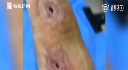 梁男手臂出现多个“恐怖黑洞”。(图/翻摄自微博)