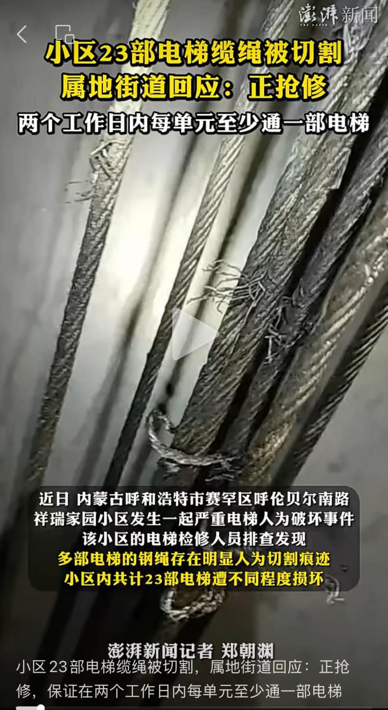 小区23部电梯“钢绳被割”事件 令人毛骨悚然