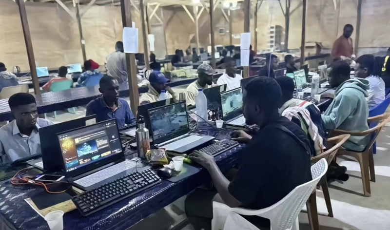 大伙儿都到非洲来赛博淘金了,什么高品质工作环境,落地窗写字楼啥的都别想了,板房一搭、电线一拉、围墙一砌,园区式工作室就齐活了。