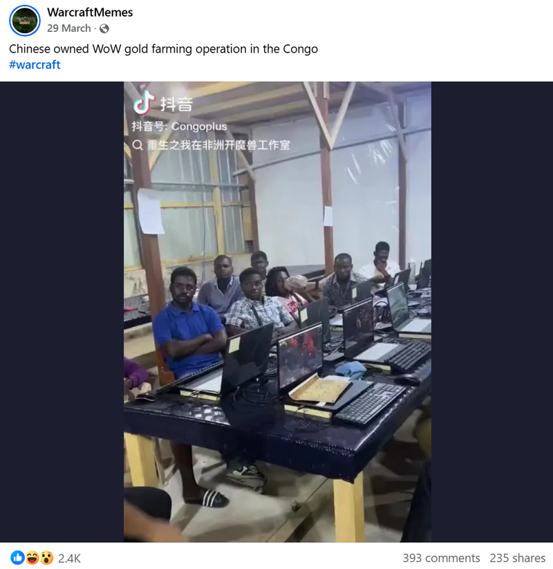 因为当年的中国,无疑是现在非洲的ProMax版,既有良好的水电网基建,劳动力也廉价丰富,国人的平均受教育水平更是远超非洲兄弟,自然成了国际代练产业链上的扛把子存在。