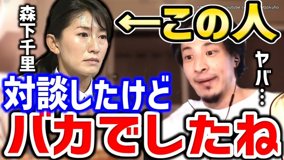 “啊,对了,我想起来了!当西村博之问森下千里粮食自给率是什么意思时,她竟然说什么“希望国民多吃国产的东西”之类完全说不清楚的话,简直是笨得一目了然!担任要职的森下千里,作为艺人出身的议员真的没必要!被西村博之揭露出的“知识不足”,让国民对她产生不信任。”
