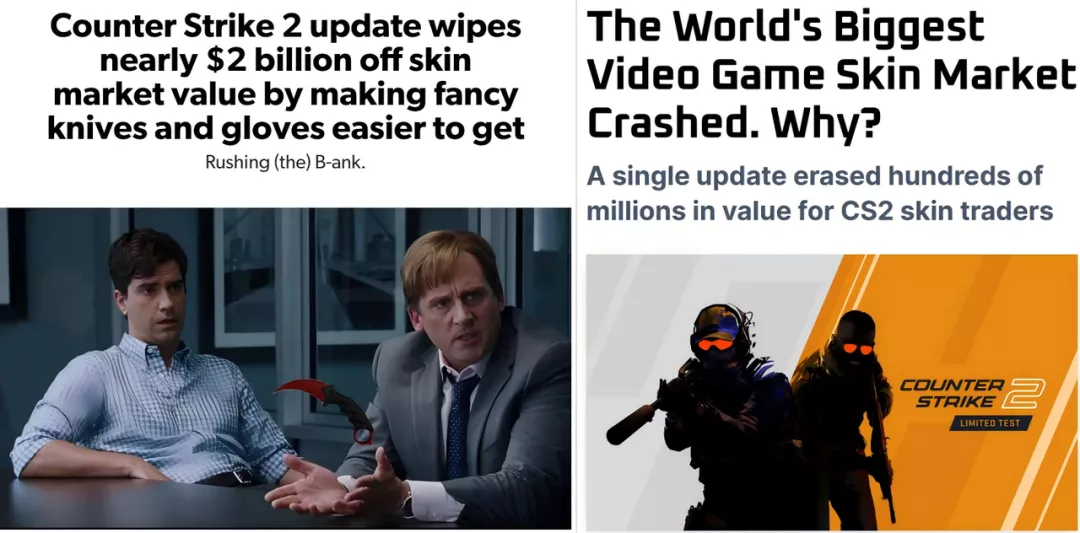 据外媒EuroGamer报道,V社此次补丁更新,导致《CS2》饰品市场蒸发了近20亿美元;外媒Resell Calendar则发文称,全球最大的电子游戏饰品市场崩盘。