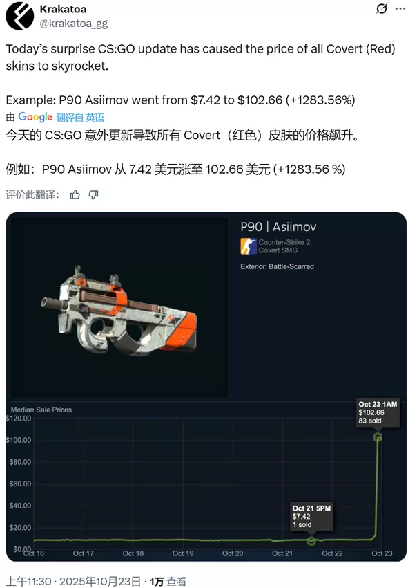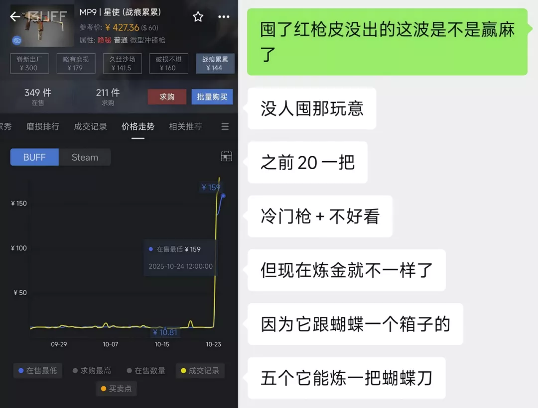 其实就前文的饰品指数来看(补丁更新前指数还一直在涨),这波暴跌完全是在倒爷意料之外的事情。