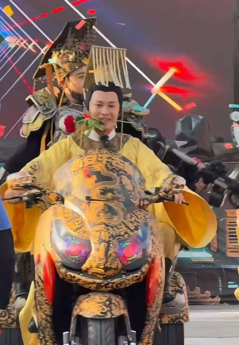 据此前报道,近日,一条视频在网络上引发热议。49岁的演员郑国霖还原了《隋唐英雄传》中“李世民”的经典造型,他身着明黄龙袍、金冠束发、嘴叼玫瑰,骑着摩托车载着扮演“秦始皇”的演员呼啸而过,两位“千古一帝”的魔性互动引得现场游客阵阵欢呼。