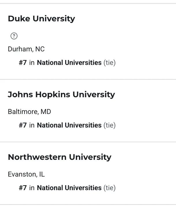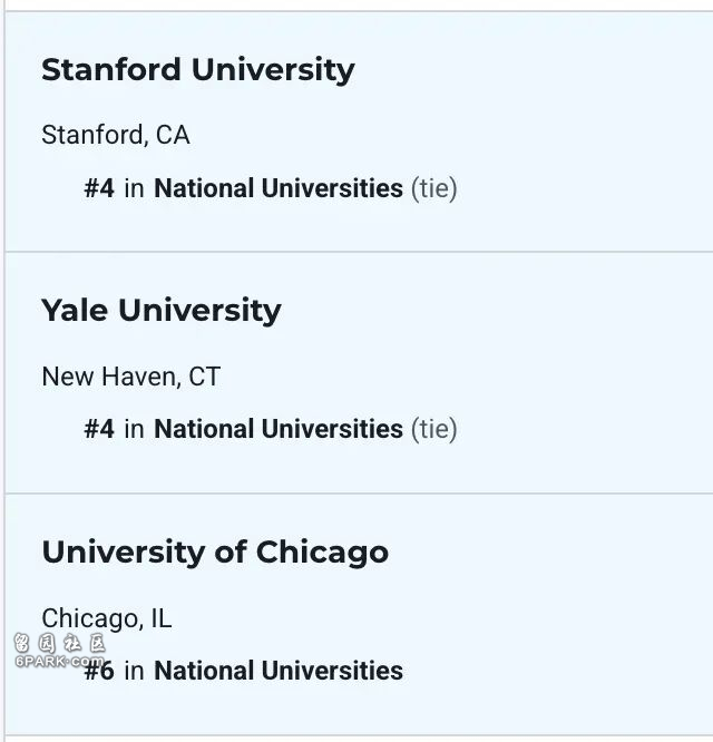 斯坦福和耶鲁并列第4,芝加哥(专题)大学跌至第6,而杜克、约翰斯·霍普金斯、西北和宾大并列第7,格局趋向胶着。