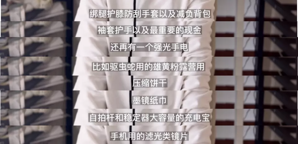 “旅游要诀是打绑腿、保温盖毯、腰带、跌打损伤药;