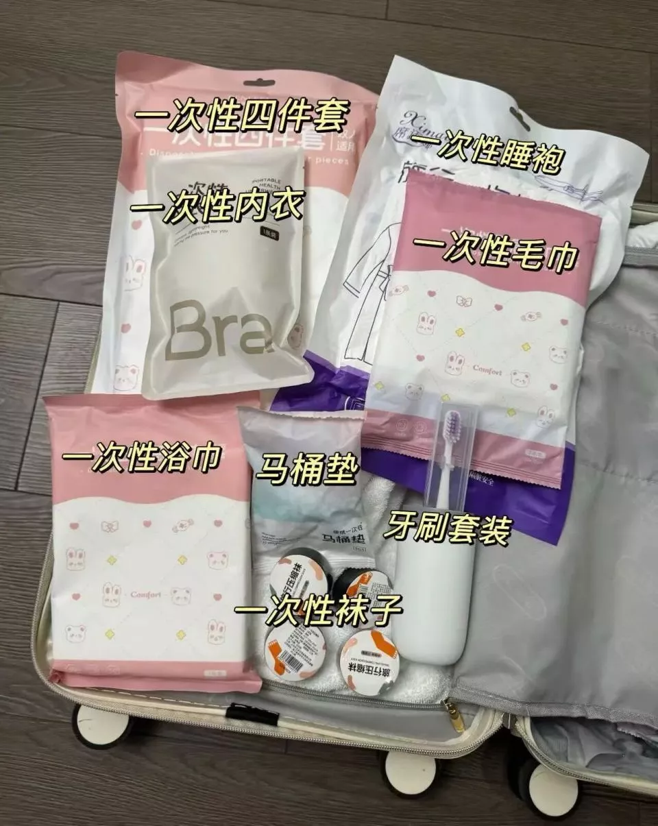 首先,第一批“会聪明游”的人,已经把能叫得上号的行李,都换成了一次性用品: