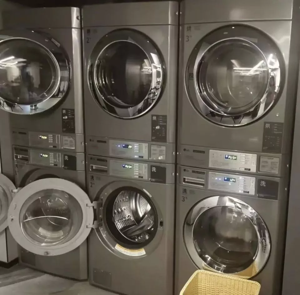 几万块的商用洗衣机,啥真丝羊绒都不在话下。洗得比家里快,烘得比家里干。