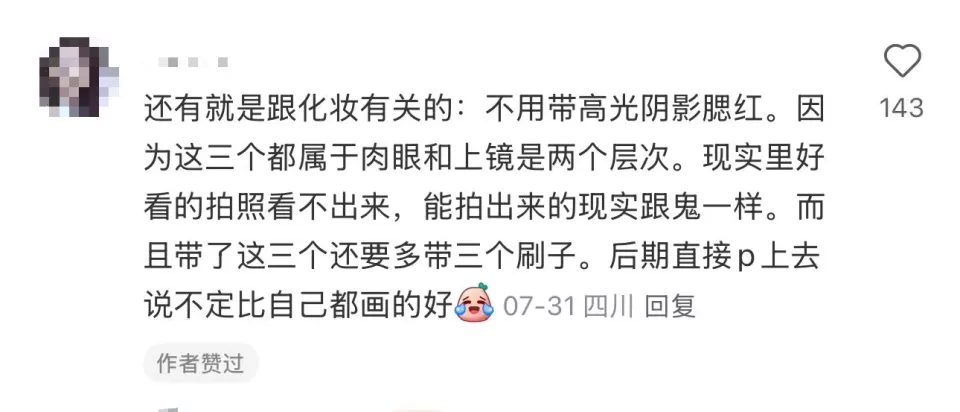 减少了带化妆品的重量,也减少了化妆的步骤。