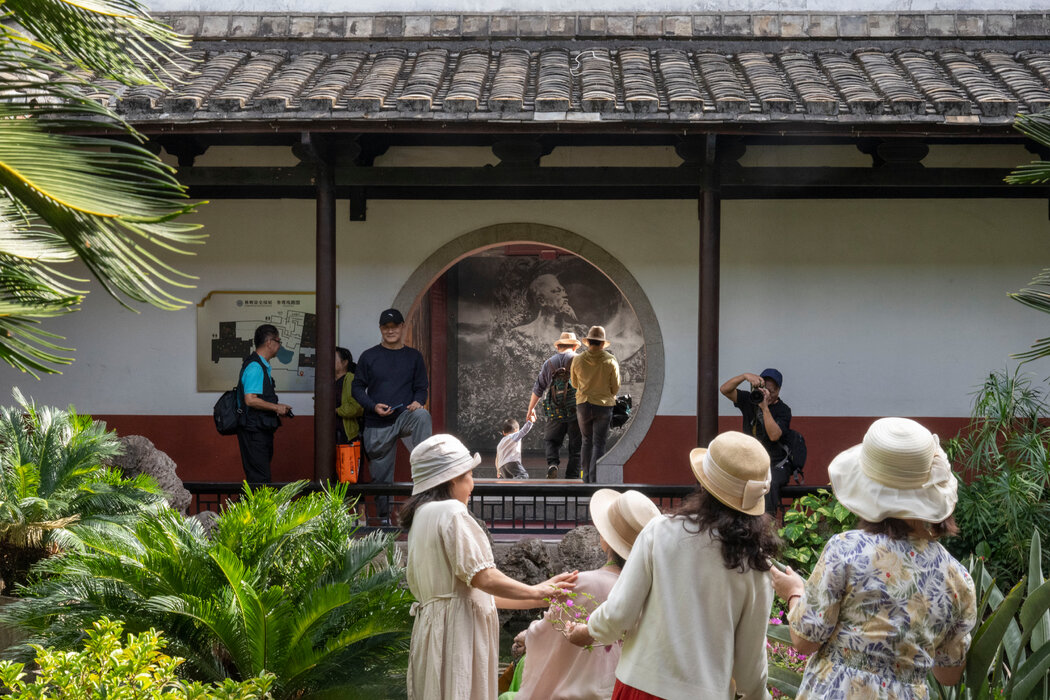 在林则徐纪念馆拍照留念的游客。 GILLES SABRIÉ FOR THE NEW YORK TIMES