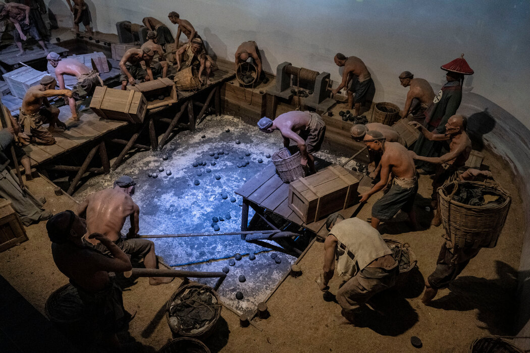 林则徐纪念馆内的景观模型再现了当年在珠江销毁鸦片的场景。 GILLES SABRIÉ FOR THE NEW YORK TIMES
