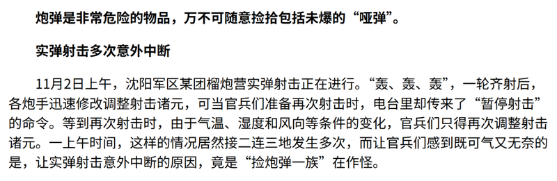 而且,即使这些群众是在射击完全结束,部队已经撤走的情况下才进入训练场,也是有很大问题的。因为在捡炮弹皮的过程中,很容易就会遇到未爆弹。
