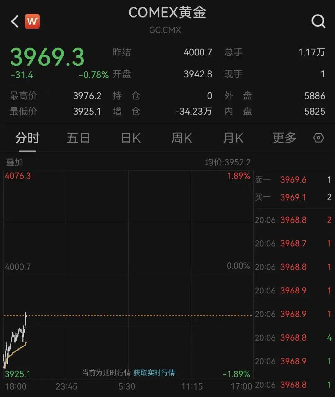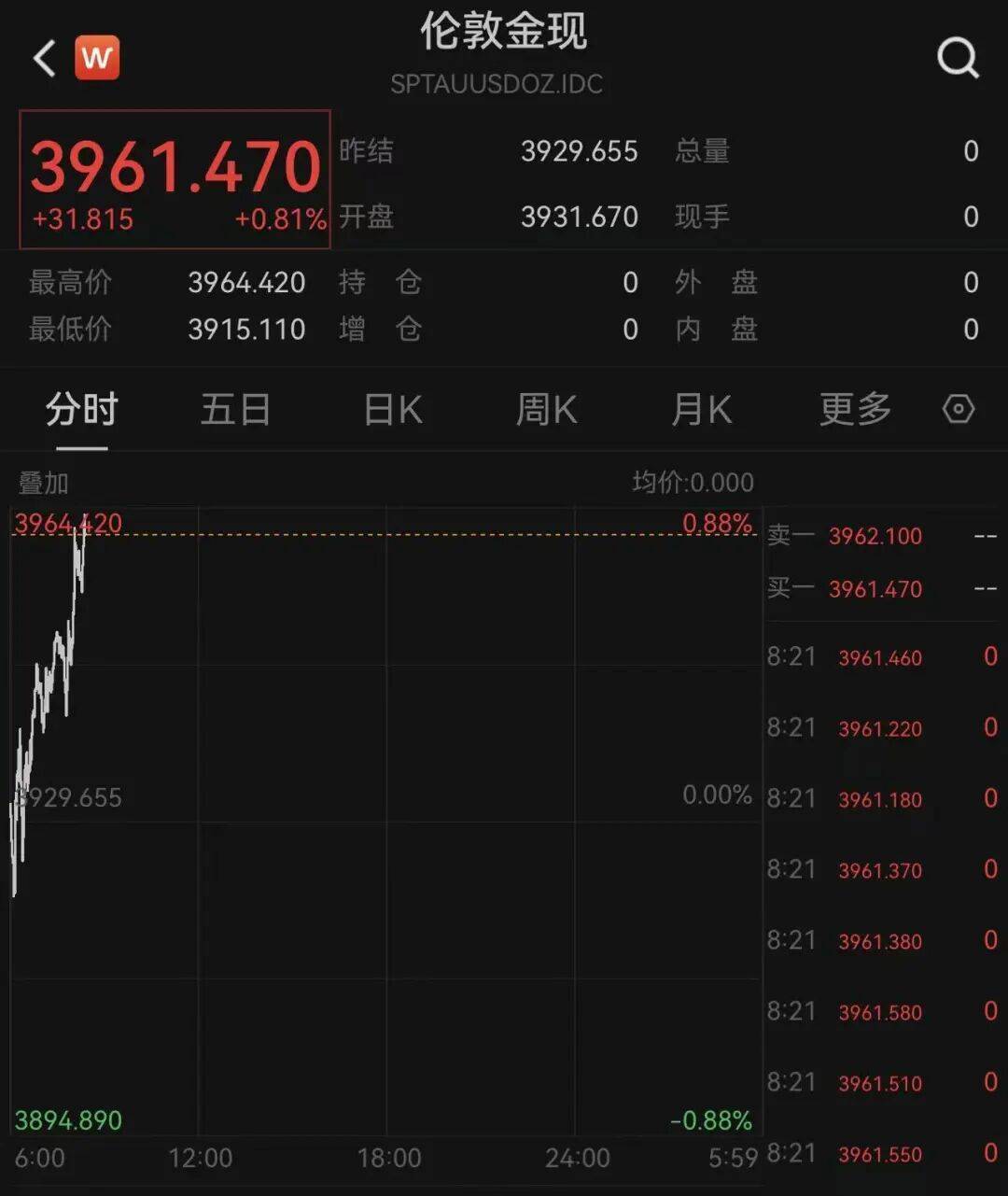 10月29日收盘,现货黄金跌0.56%,报3929.66美元/盎司;COMEX黄金期货跌1.04%,报3941.7美元/盎司;COMEX白银期货跌0.1%,报47.275美元/盎司。截至发稿,现货黄金涨0.81%,报3961.47美元/盎司;COMEX黄金期货跌0.78%,报3969.3美元/盎司