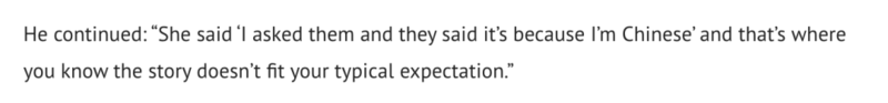 更有目击者称,事发片刻后,这名受害者不断重复,她因自己是中国人而遭到袭击,感到“极度愤怒”。受害者表示:“我问过他们,他们说我被袭击是因为我是中国人。”