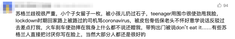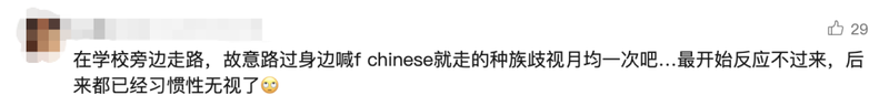 “自己在英国遇到种族歧视多了,后面都习惯性无视。”