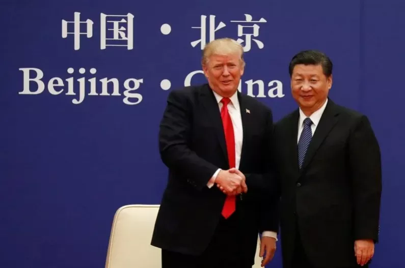美国总统川普2017年11月9日访问北京时,与中国国家主席习近平一同出席企业领袖活动。路透