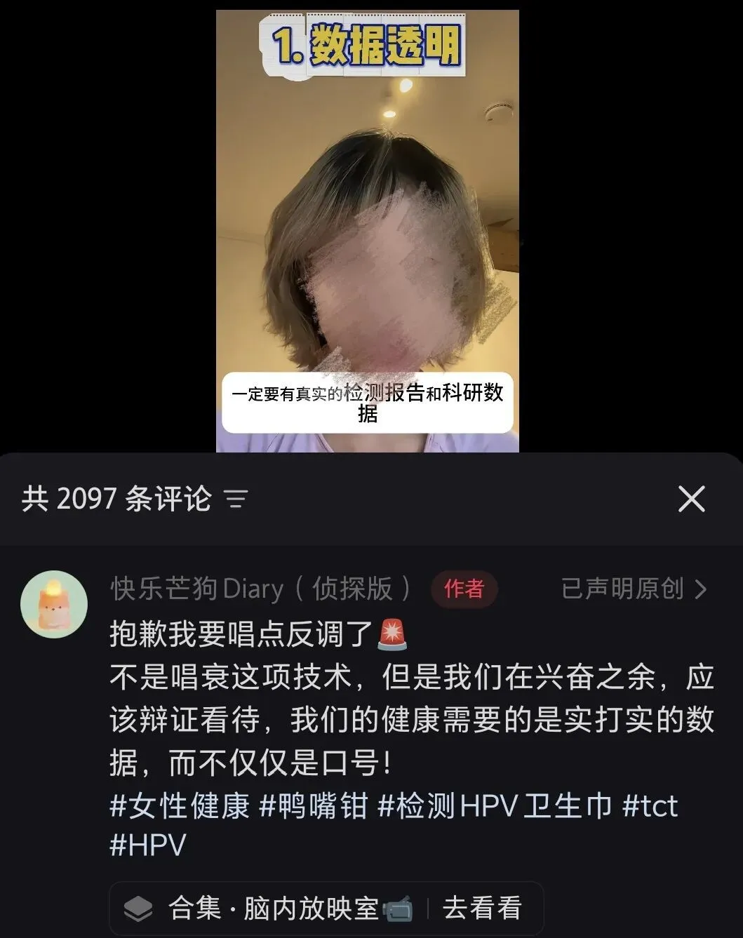 在社交媒体上,女性用户对这款能检测HPV的卫生巾进行讨论。(图/社交媒体截图)
