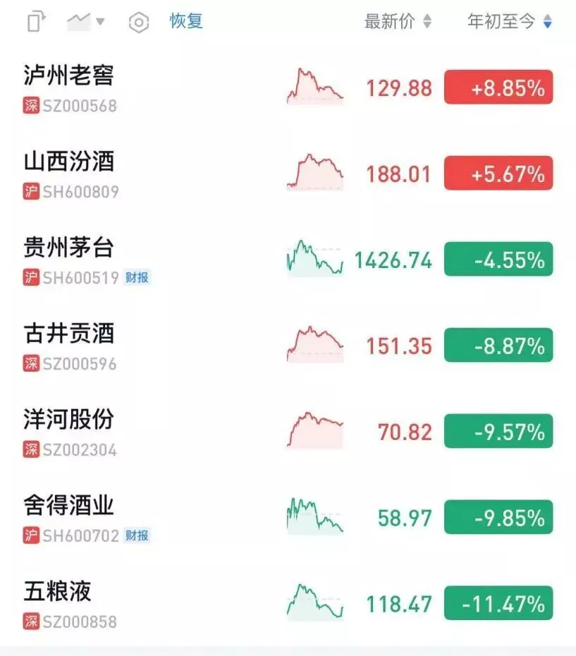 相比之下,洋河股份、古井贡酒、舍得酒业的股价均在下滑,五粮液股价更是年内累跌11.47%。