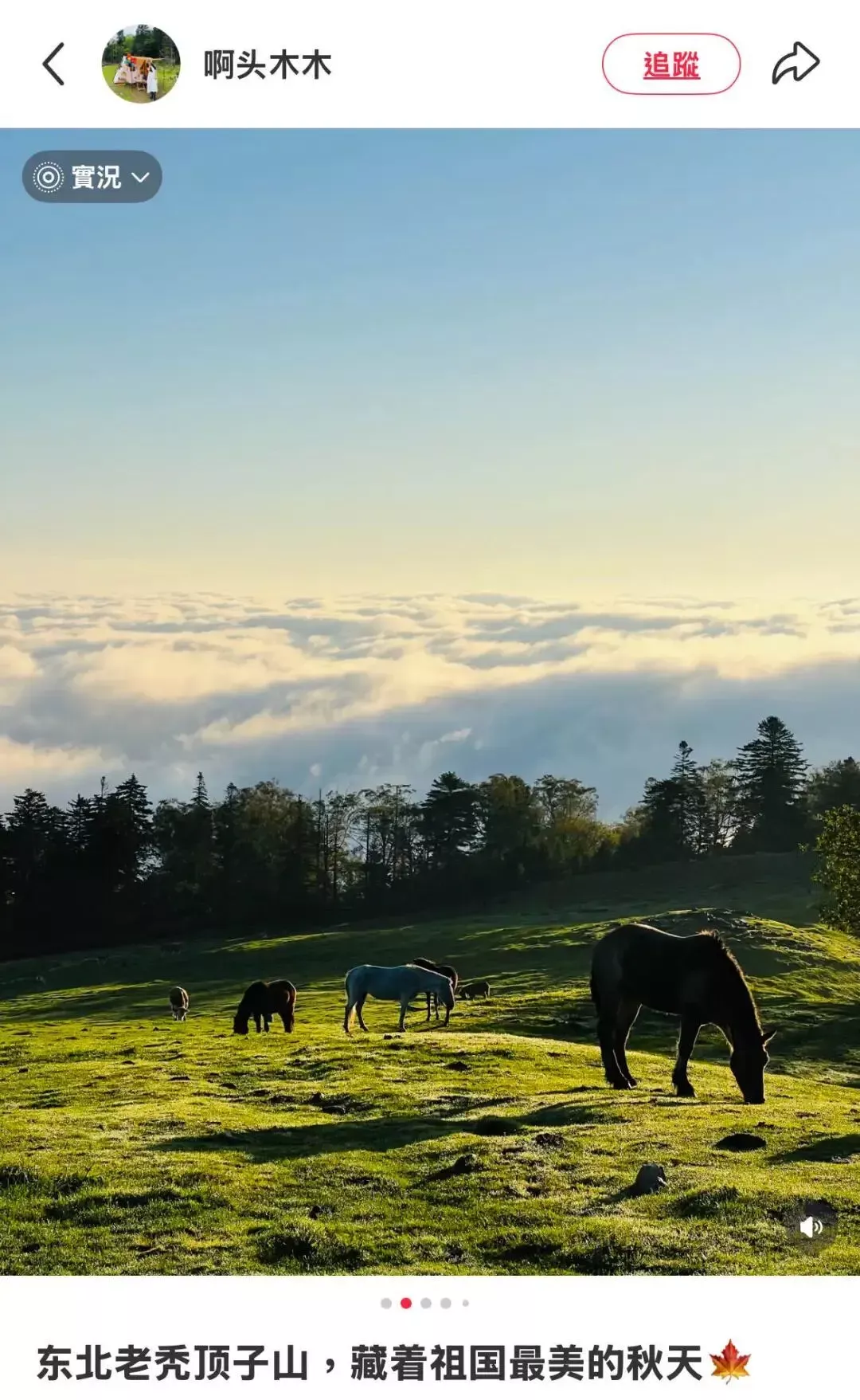有成片草原的地方,其他城市叫“长鸟岛”“鸳鸯草场”“奇冠顶”,东北人则管他们的草原叫“老秃顶子山”,乍一听还以为这地方人烟稀少,也没什么植物,光秃秃的,实则这里草原和树林相映,景色开阔壮丽。