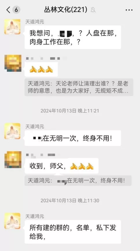 “落座”后,赵雨欣进入了另一个名为“丛林文化”的群聊,她才真正了解了这个极其重视线上发展人员的组织。
