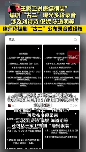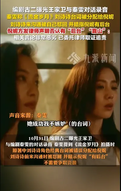 据热度新闻消息,10月31日,编剧古二再曝王家卫秦雯录音,引发对倪妮“后台”、“靠山”等猜测。