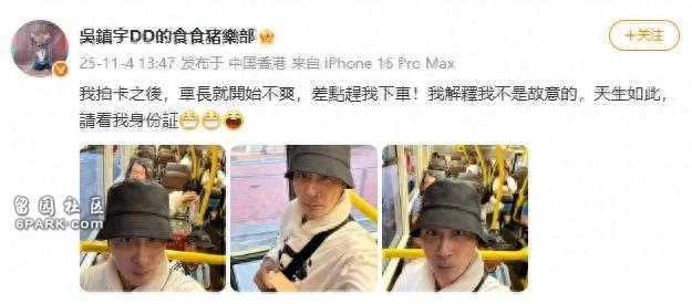 估计车长看完身份证得懵一会儿——这颜值和年龄也差太多了。后来吴镇宇把这事儿发上网,配文里还带着点小得意,评论区直接笑成一片。