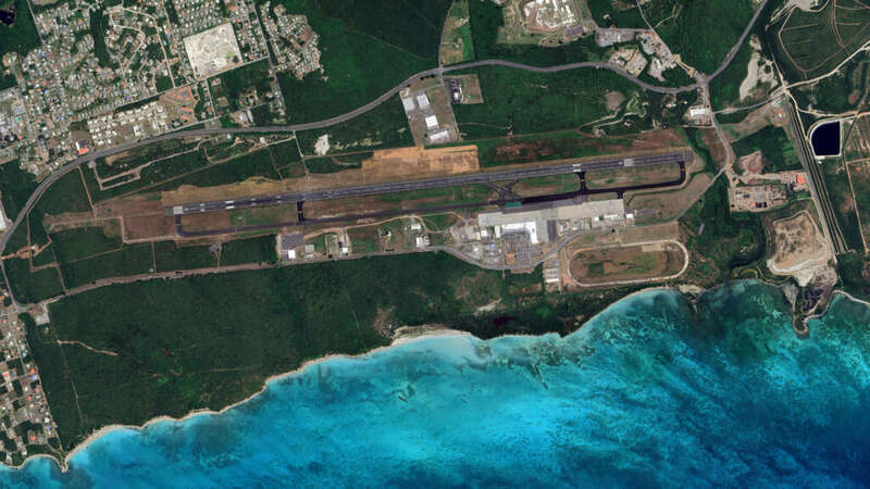 卫星图像显示了美属维尔京群岛圣克罗伊岛的亨利·E·罗尔森机场。2024 年 3 月 28 日。 via REUTERS - Google Earth/Airbus