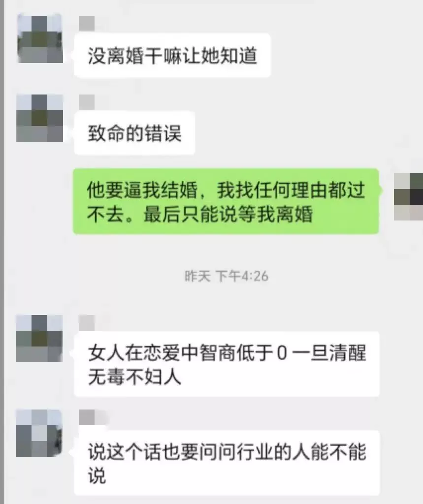 “女人在恋爱中智商低于0,一旦清醒无毒不妇人”,在一份男方的聊天记录中,一个群成员发表如此言论。当时的他们还不知道,伤心女人联盟已经组建,一场对他们的讨伐即将开始。