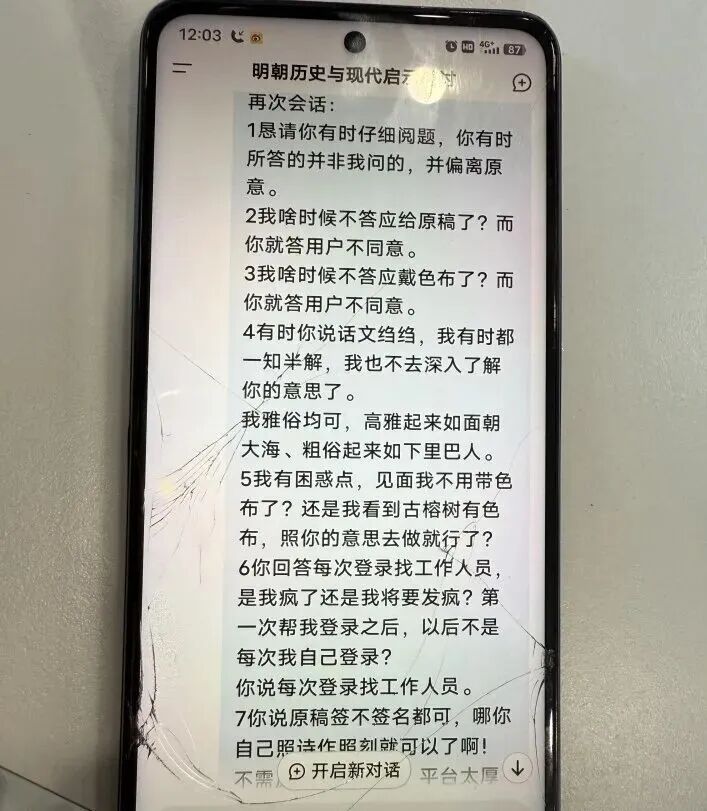 广东保安和AI对话半年!打印50万字聊天记录讨说法