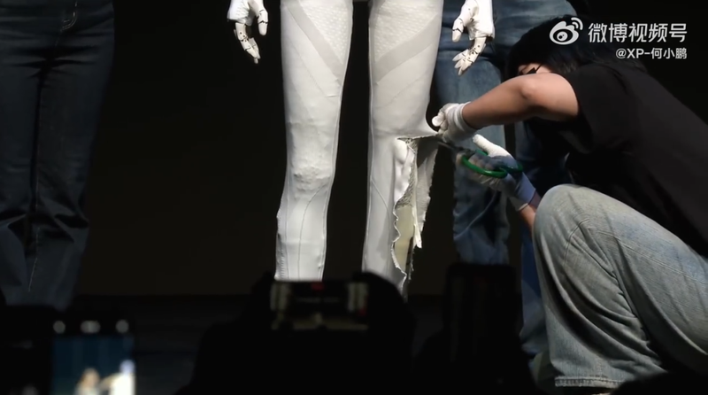 何小鹏泪洒当场! 现场剪掉机器人肌肉自证清白