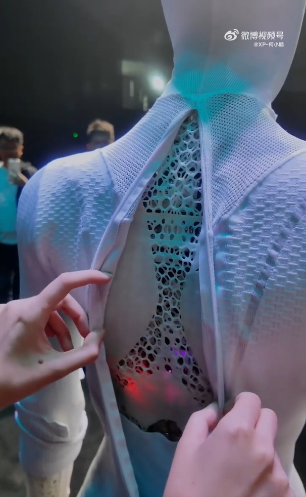 11月6日上午,何小鹏在其社交媒体对“全新一代IRON机器人是否内藏真人”进行回应。他发布视频,还原了机器人走猫步的全过程,并让机器人团队拉开背后拉链,全方位展示内部构造,包括背部的晶格肌肉与控制器、肩膀的运输固定器,耳朵位置的麦克风阵列、手部谐波关节等。