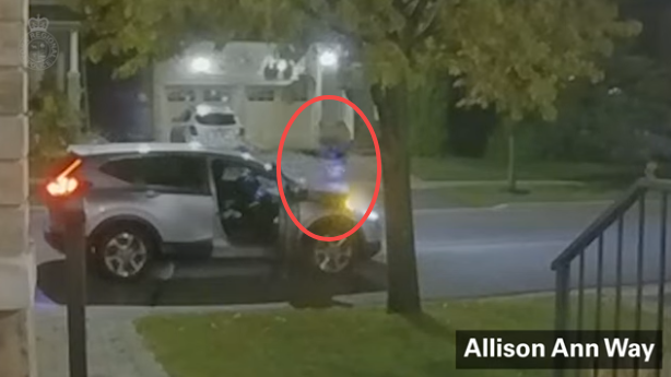 监控画面显示,有人驾驶一辆银色SUV在Farrell Drive停下后,朝一栋房屋连开数枪。几分钟后,同一辆车出现在Allison Ann Way,有人从副驾驶下车朝房屋开枪后迅速逃离。