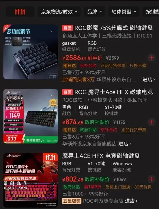 华硕ROG磁轴键盘、雷蛇光轴键盘,爆款产品随随便便一把就是一两千块;