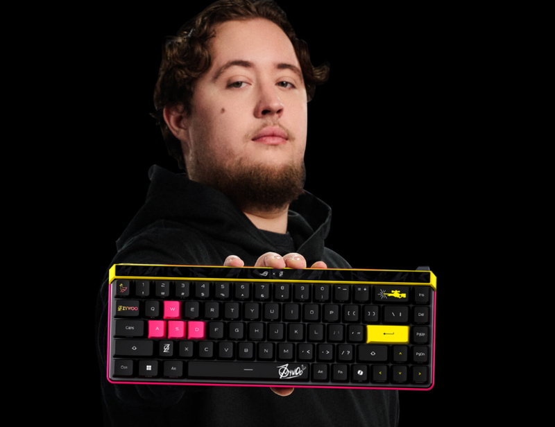 2025年10月,ROG就与《反恐精英》职业选手ZywOo推出了联名特别版磁轴键盘。