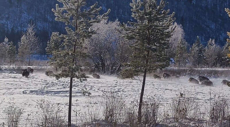 据现场视频拍摄画面,雪地里,五六十头的野猪一只接一只飞奔过马路穿雪地,速度特别快。评论区网友对此场景感到十分惊讶,纷纷称从未见过这么多头猪组团过马路。