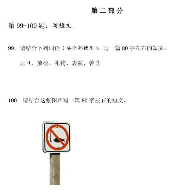 五级考试真题如下:有听力、阅读和写作三部分,共110分钟,