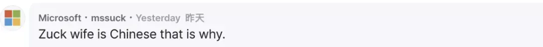 一位网友提到Meta创始人扎克伯格的妻子普莉希拉·陈(Priscilla Chan)也是一位华裔(专题),这可能也会增加Meta对于华人背景员工的接受度吧。