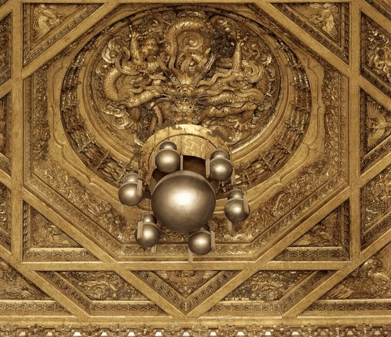 关于龙椅还有一个传说,非天子坐龙椅会遭天谴,因为龙椅上方的龙珠会砸下。正因如此,袁世凯在称帝时,也不敢坐上这把龙椅。