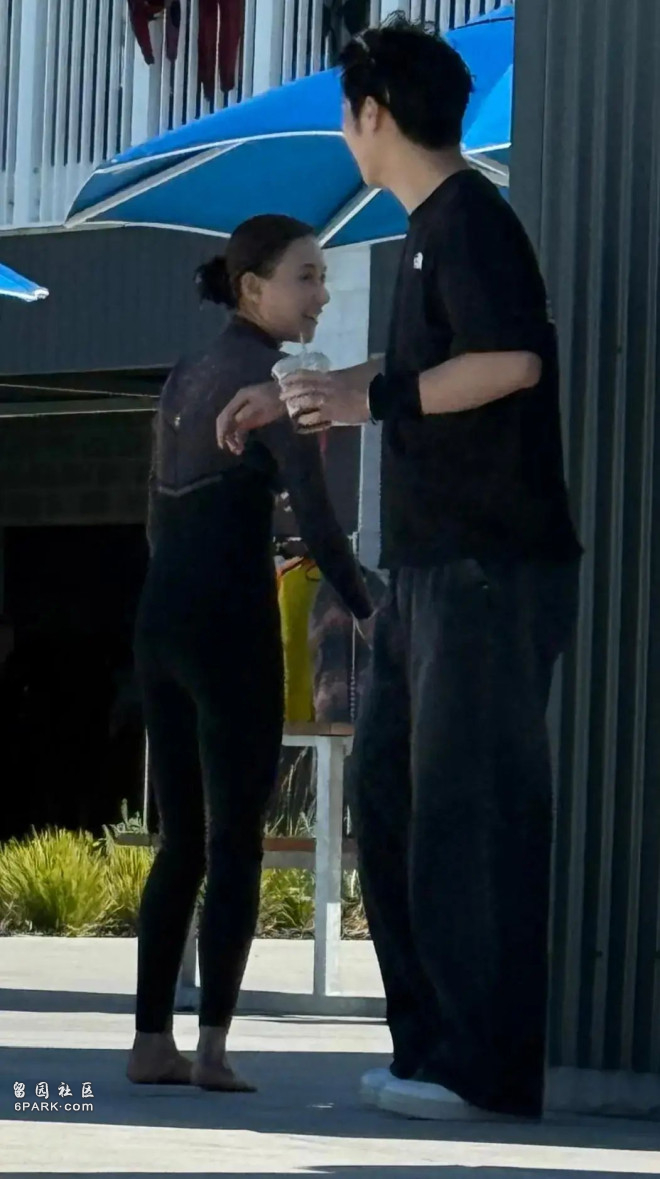从网友晒出的同框照片来看,两个人之间相处和谐。看大全景,地上放了许多冲浪板,四周也有不少冲浪装备,只见何超莲穿着一套黑色的冲浪服装站在窦骁旁边,虽然站姿不够挺拔,但是身材纤细,而只露了后脑勺的窦骁两只手都很忙,似乎是侧着身子在跟老婆交流。