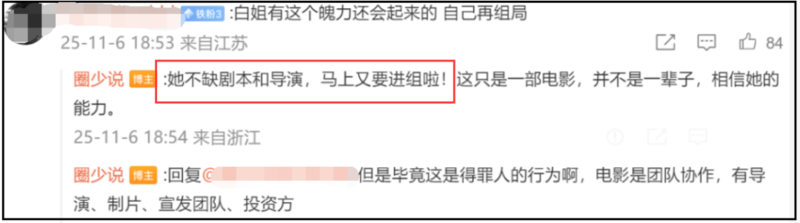 当时,白百何带头内涵《春树》剧组后,她的好友立刻煽风点火,透露各种细枝末节,将舆论推到最高潮。不少支持白百何的网友,也在他的社交平台留言,称赞他们是“内娱活人”。而这位好友更是沾沾自喜,称白百何不愁戏拍,马上要进组了。